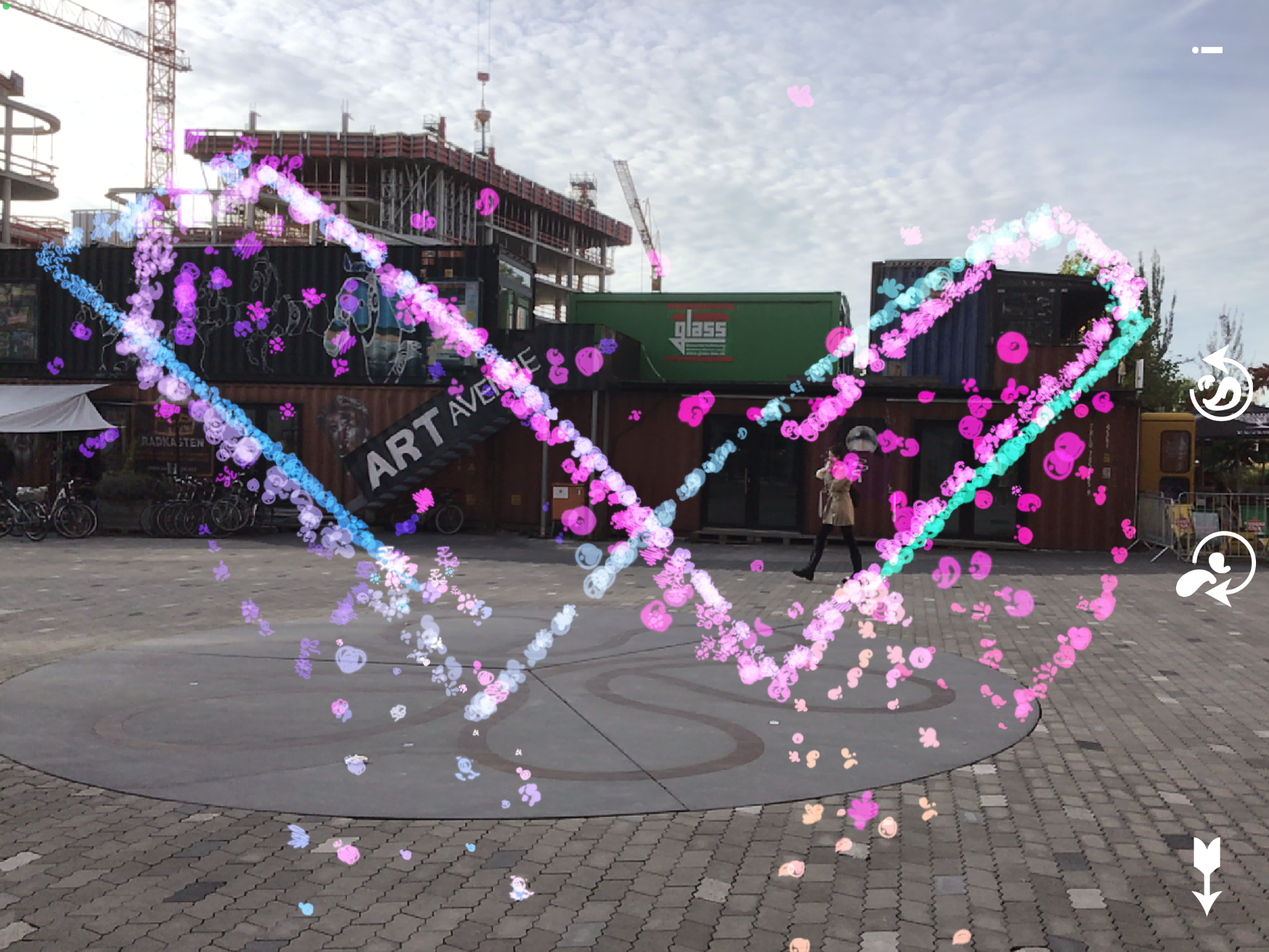 Das Areal „Werksviertel“ am Münchener Ostbahnhof – ehemalig das Gelände der Firma »Pfanni« im Münchner Osten, ab 1996 legendäres Party-Areal »Kunstpark Ost« und von 2003 – 2016 die »Kultfabrik« – wird seit 2012 städtebaulich erschlossen (Baubeginn 2017) und ist noch längst nicht fertig gestellt. Das Viertel ist einer hohen Dynamik ausgesetzt. Anhaltende Planungs- und Bauarbeiten, An- und Auslieferung von Waren und Lebensmitteln an den ansässigen Einzel- und Großhandel, Gastronomie und Läden ziehen Laufkundschaft an, Berufstätige und neugierige Flaneure teilen sich das in Transformation befindliche Viertel. Neben fertiggestellten Bauwerken künden große Bauflächen, zahlreiche Rohbauten, Pop-Up Stores und Umnutzungen von einer herannahenden, bestmöglichen Zukunft. Oder, wie es auf der Webseite des Werkviertels heißt, einer ›beispielhaften Symbiose mit der Umgebung und seinen Nutzern‹ (https://werksviertel.de/, 17.8.2021, 14:00 Uhr).